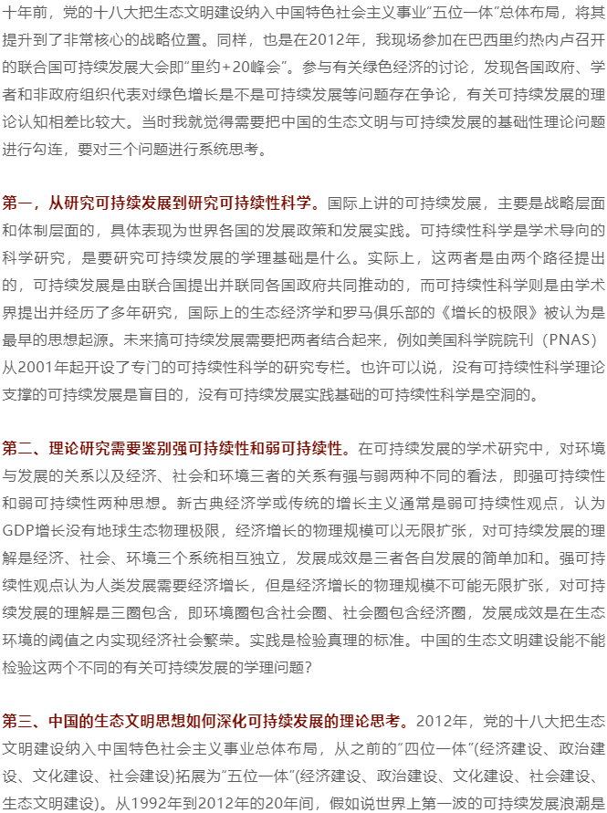 【专家视角】可持续发展·中国这十年丨中国生态文明可以检验和深化可持续性科学