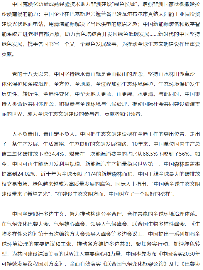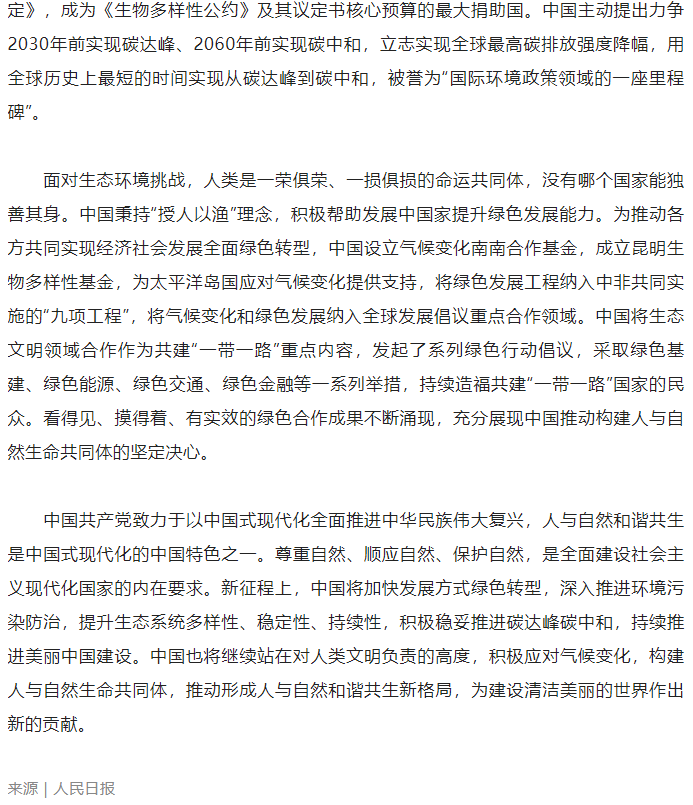 推动形成人与自然和谐共生新格局(人民日报)