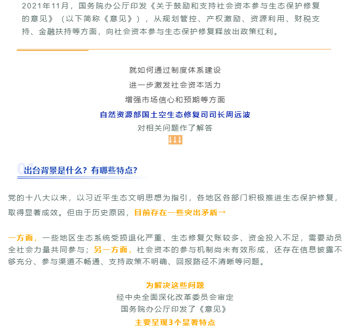 社会资本如何参与生态保护修复?有这些激励制度