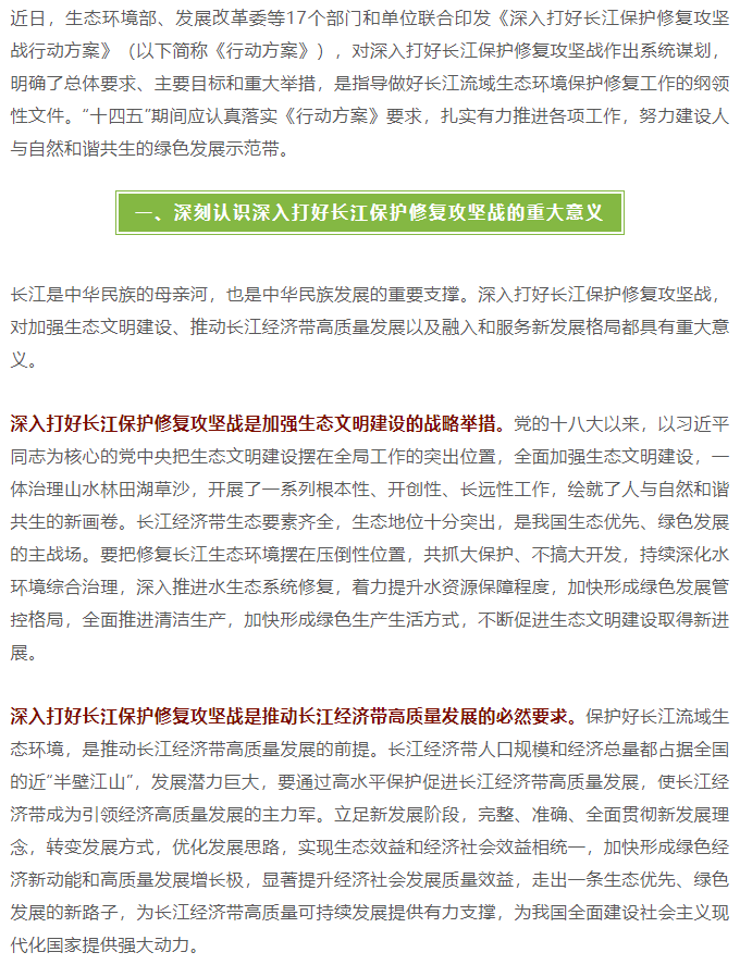 【专家视角】长江攻坚战行动方案 • 专家解读⑥ | 扎实推进长江大保护 深入打好长江保护修复攻坚战