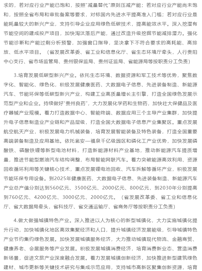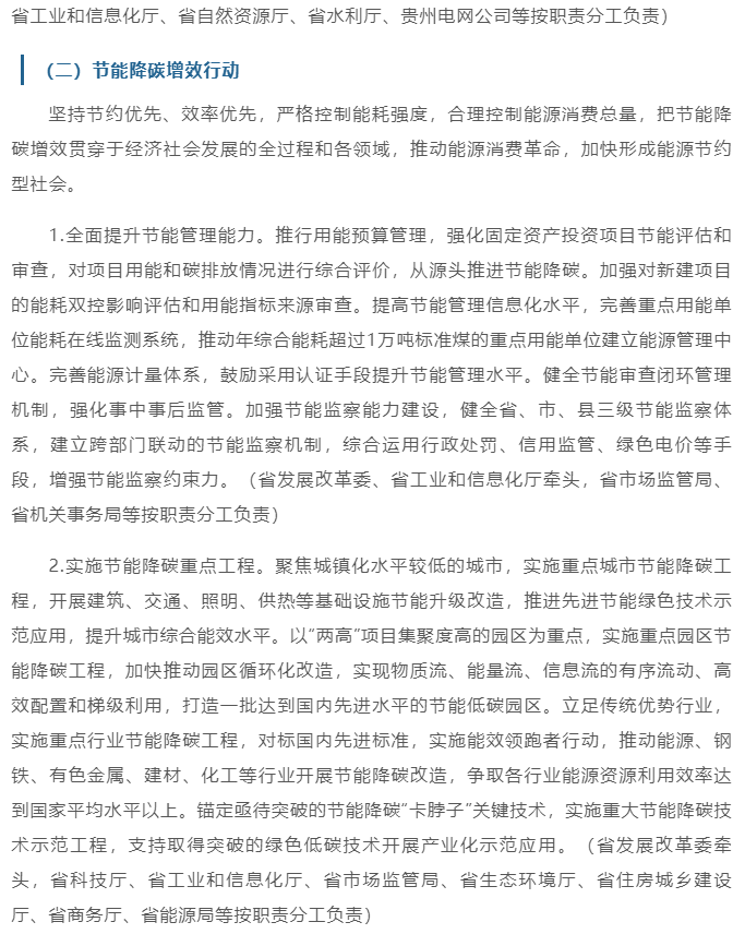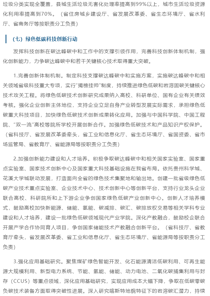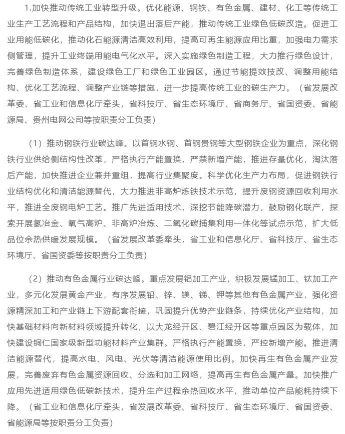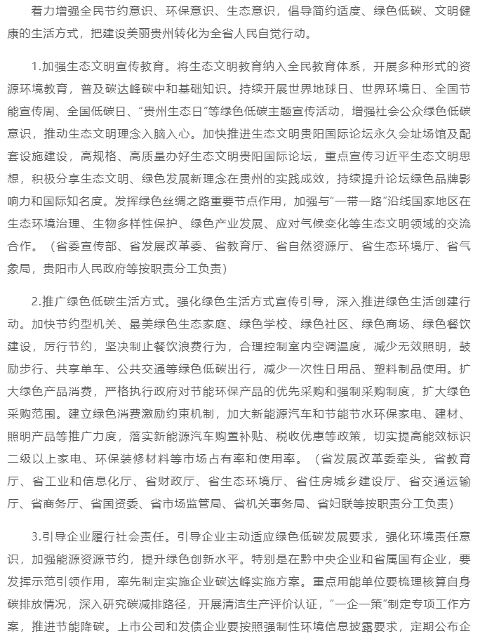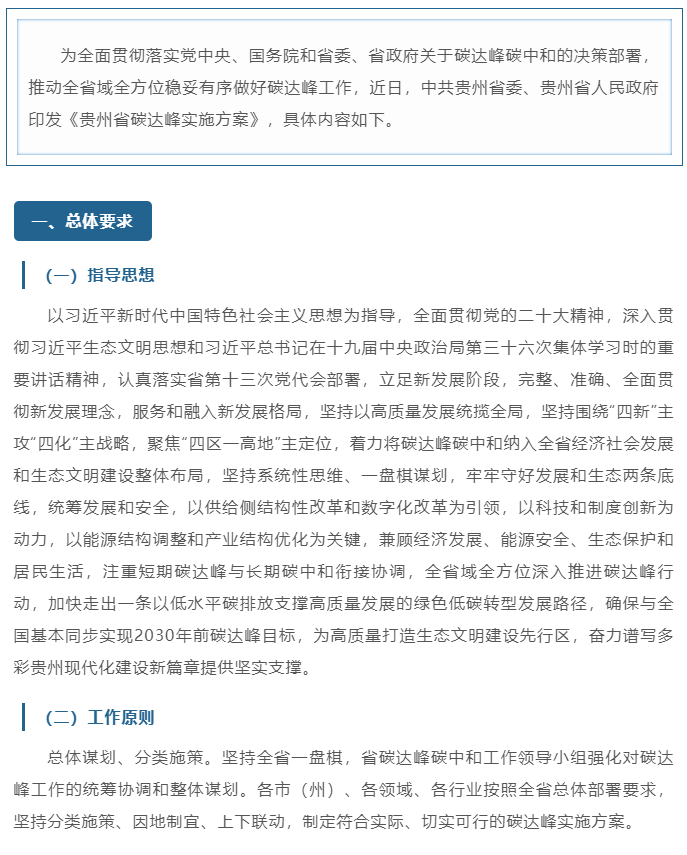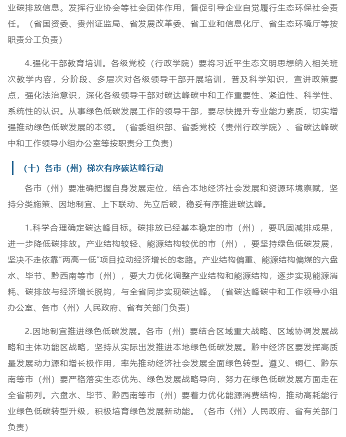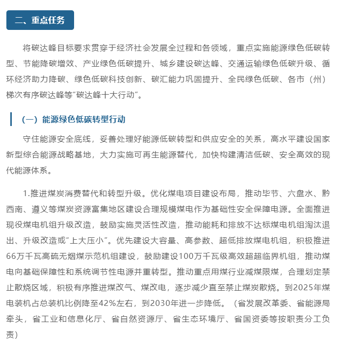 中共贵州省委 贵州省人民政府印发《贵州省碳达峰实施方案》