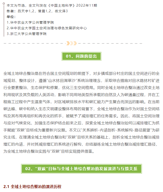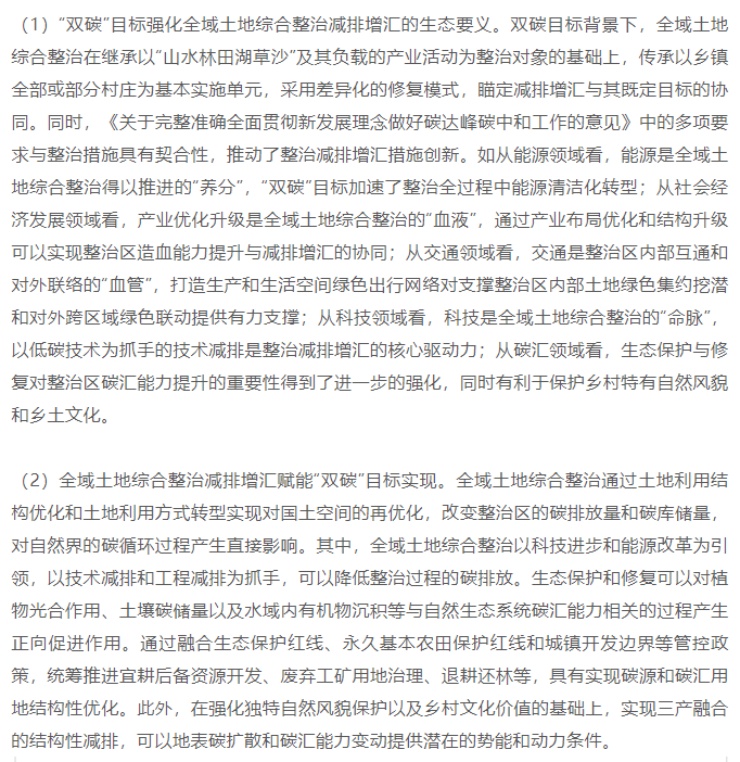 【专家视角】吕天宇 等 | “双碳”目标背景下全域土地综合整治减排增汇的机理与路径研究